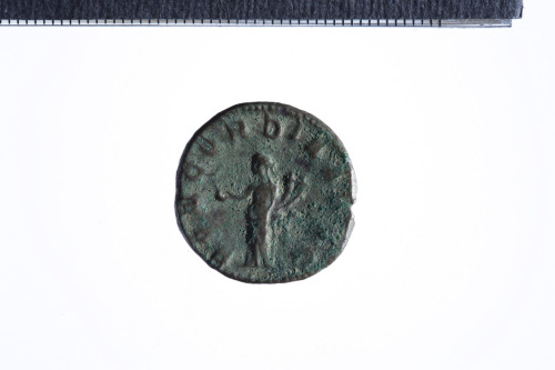 Dritto: Busto radiato e drappeggiato di Volusiano a d.; contorno perlinato.. Rovescio: Concordia stante a s. con patera e doppia cornucopia; contorno perlinato.