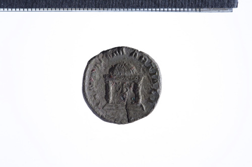 Dritto: Busto radiato e drappeggiato di Volusiano a d.; contorno perlinato.. Rovescio: Giunone seduta frontalmente dentro un tempio distilo; contorno perlinato.