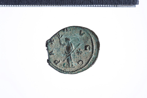 Dritto: Busto radiato e drappeggiato di Volusiano a d.; contorno perlinato.. Rovescio: Pax stante a s. con ramo e scettro trasversale; contorno perlinato.