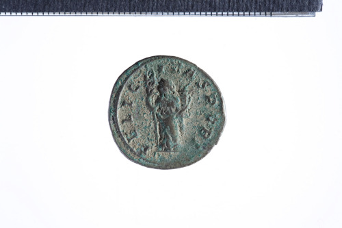 Dritto: Busto radiato e drappeggiato di Volusiano a d.; contorno perlinato.. Rovescio: Felicitas stante a s. con lungo caduceo e cornucopia; contorno perlinato.