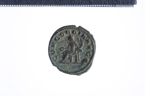 Dritto: Busto radiato e drappeggiato di Volusiano a d.; contorno perlinato.. Rovescio: Concordia seduta a s. con patera e doppia cornucopia; contorno perlinato.