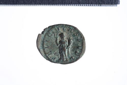 Dritto: Busto radiato e drappeggiato di Volusiano a d.; contorno perlinato.. Rovescio: Felicitas stante a s. con lungo caduceo e cornucopia; contorno perlinato.