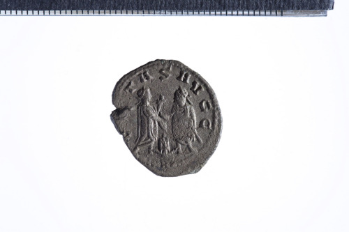 Dritto: Busto radiato e drappeggiato di Valeriano a d.; contorno perlinato.. Rovescio: Gli imperatori stanti l'uno di fronte all'altro con scettro, sacrificano su un altare; contorno perlinato.