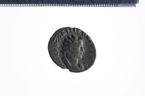 Dritto: Busto radiato e corazzato di Gallieno a d.; contorno perlinato.. Rovescio: Soldato elmato stante a s. con lancia appoggiato a uno scudo; contorno perlinato.