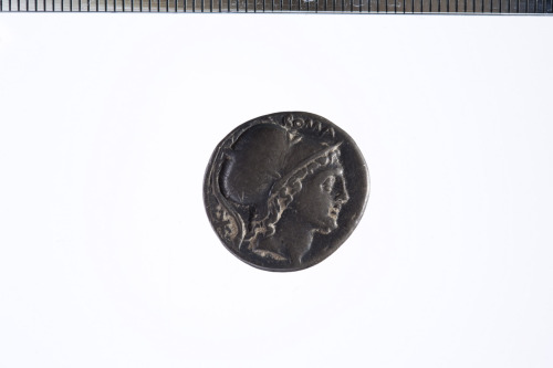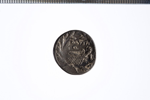 Dritto: Testa Galeata di Roma a d. con elmo piumato; c.p.. Rovescio: Nave a d. all'interno di una corona di quercia; c.p.