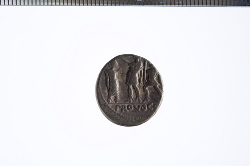 Dritto: Testa galeata di Roma a d.; c.p.. Rovescio: Al centro una figura in vesti militari stante a s. tiene la mano d. alzata sopra una figura togata che gesticola con la mano d. verso il militare; a d., dietro il militare un attendente regge con la mano d. un bastone e con la s. due altri bastoni.; c.p.