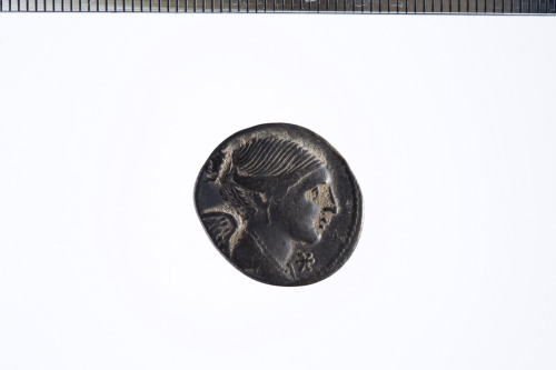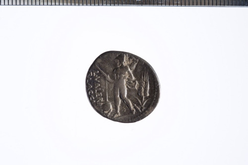 Dritto: Busto drappeggiato della Vittoria a d., davanti X con barra in mezzo; c.p.. Rovescio: Marte andante a d. che regge con la mano d. una lancia con la punta verso il basso e porta un trofeo sopra la spalla s.; davanti un apex e dietro una spiga di grano; c.p.