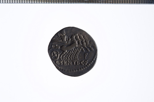 Dritto: Testa galeata di Roma a d.; c.p.. Rovescio: Giove in quadriga a d. che regge il fulmie e le redini con la mano s. e lo scettro con la d.; c.p.