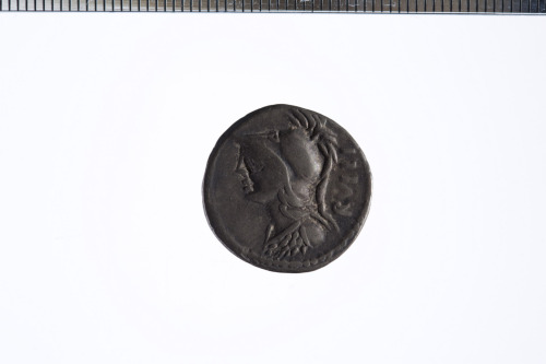 Dritto: Busto di Minerva a s. con elmo corinzio ed egida; c.p.. Rovescio: Vittoria in biga a d. che regge le redini con la mano d. e un ramo di palma con la s.; c.p.