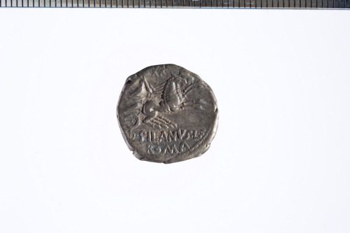 Dritto: Testa galeata di Roma a d.; dietro la testa a s. F; c.p.. Rovescio: Vittoria in biga a d. che regge le redini con entrambe le mani; c.p.