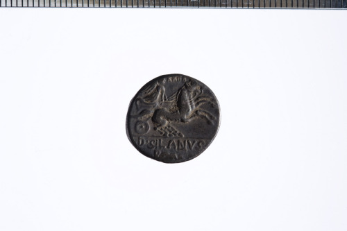 Dritto: Testa galeata di Roma a d.; dietro la testa a s. M; c.p.. Rovescio: Vittoria in biga a d. che regge le redini con entrambe le mani; c.p.