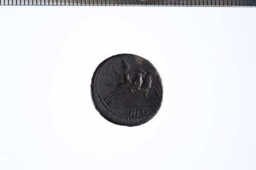 Dritto: Teste aggiogate a d. di Numa Pompilo, barbato, e di Anco Marcio; c.p.. Rovescio: Desultor a d. con un cappello conico che regge un frustino con la mano d.