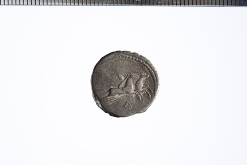 Dritto: Teste aggiogate a d. di Numa Pompilo, barbato, e di Anco Marcio; c.p.. Rovescio: Desultor a d. con un cappello conico che regge un frustino con la mano d.