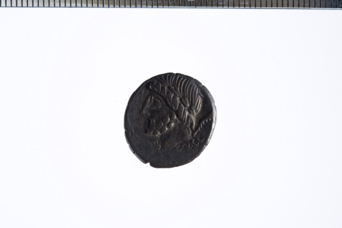 Dritto: Testa laureata di Saturno a s.; dietro , harpa; c.p.. Rovescio: Venere in biga a d. che regge con la mano s. lo scettro e le redini di s.; sopra vola un Cupido che regge una corona; c.p.