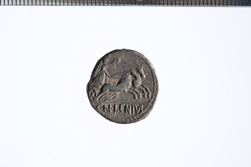 Dritto: Busto di Marte con elmo corinzio visto da dietro con la testa volta a d., con una lancia sulla spalla s. e una spada sulla d.; c.p.. Rovescio: Vittoria in biga a d. che regge le redini con la s. e una corona con la d.; c.p.
