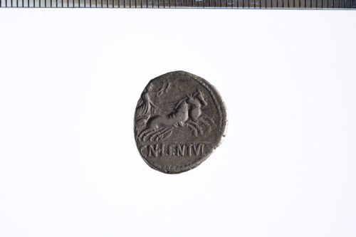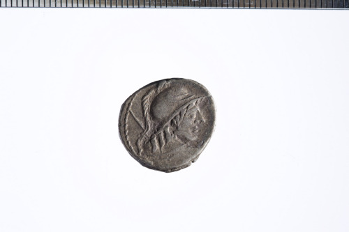 Dritto: Busto di Marte con elmo corinzio visto da dietro con la testa volta a d., con una lancia sulla spalla s. e una spada sulla d.; c.p.. Rovescio: Vittoria in biga a d. che regge le redini con la s. e una corona con la d.; c.p.