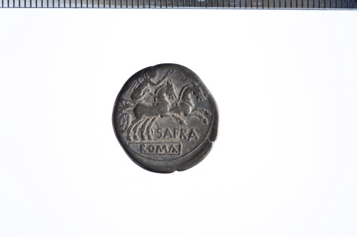 Dritto: Testa galeata di Roma a d.; dietro simbolo di valore X; c.p.. Rovescio: Vittoria su biga al galoppo a d., regge le redini con la s. e la frusta nella d.; es. ROMA in contorno lineare