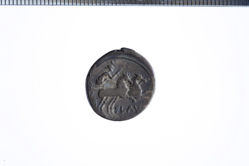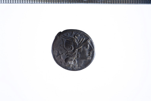 Dritto: Testa galeata di Roma a d.; dietro simbolo di valore X; c.p.. Rovescio: La dea Luna su biga a d., regge le redini con la s. e frustino nella d.; es. ROMA