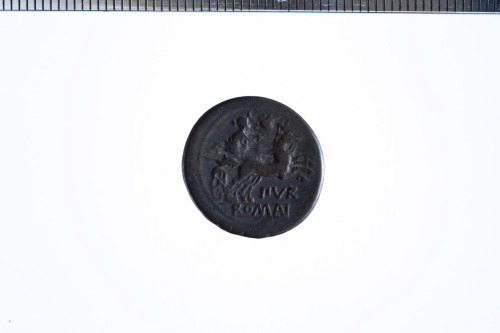 Dritto: Testa galeata di Roma a d.; dietro simbolo di valore X; c.p.. Rovescio: La dea Luna su biga a d., regge le redini con la s. e frustino nella d.; davanti conchiglia; es. ROMA