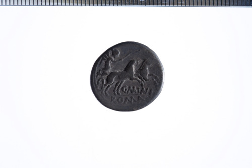 Dritto: Testa galeata di Roma a d.; dietro simbolo di valore X; c.p.. Rovescio: Vittoria su biga a d.; es. ROMA