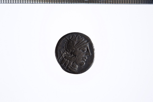 Dritto: Testa elmata di Roma a d.; dietro simbolo di valore X, c.p.. Rovescio: Vittoria su biga al galoppo verso d., con redini nella s. e frusta nella d.; es. ROMA