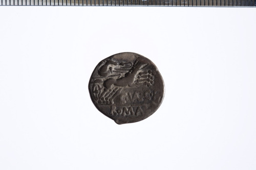 Dritto: Testa elmata di Roma a d.; dietro simbolo di valore X, c.p.. Rovescio: Vittoria su biga a d.; es. ROMA