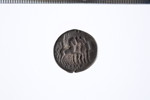 Dritto: Testa elmata di Roma a d.; davanti simbolo di valore X barrato; c.p.. Rovescio: Giove su quadriga a d.; es. ROMA