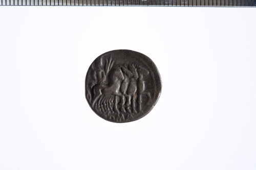 Dritto: Testa elmata di Roma a d., davanti simbolo di valore X barrato, c.p.. Rovescio: Giove su quadriga verso d.; es. ROMA