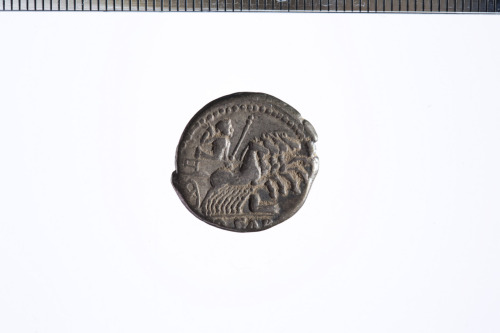 Dritto: Testa elmata di Roma a d., davanti simbolo di valore X, c.p.. Rovescio: Giove su quadriga verso d.; sotto rostro di nave; es. Q.FABI
