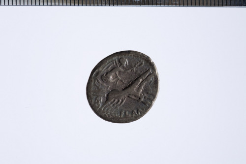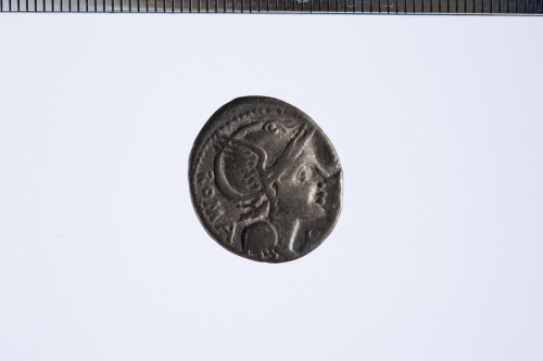 Dritto: Testa elmata di Roma a d., davanti simbolo di valore X, c.p.. Rovescio: Vittoria su biga a d., tiene redini con la s. e una corona con la d., es. [---]