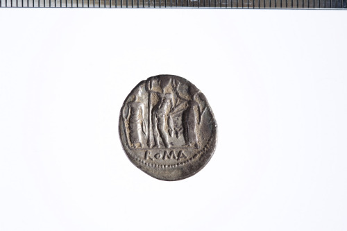 Dritto: Testa elmata di Marte a d. con elmo corinzio, sopra simbolo di valore X barrato; dietro corona. Rovescio: Giove stante tra Giunone e Minerva con scettro nella d. e saetta nella s. Minerva lo incorona con la d. e regge scettro a s. Giunone tiene scettro con la d.; tra Minerva e Giove segno di controllo: lettera Y; es. ROMA