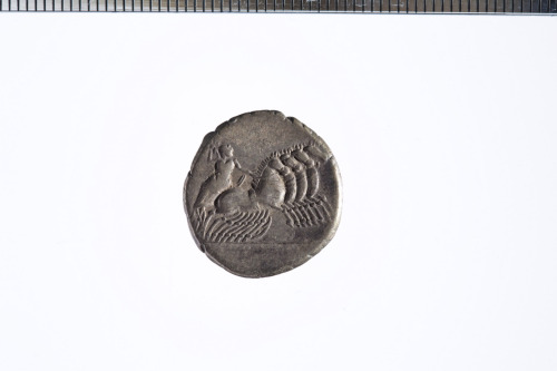 Dritto: Testa con corona di quercia di Apollo a d.; sotto, un fulmine; c.p.. Rovescio: Giove in quadriga che regge le redini con la mano s. e scaglia il fulmine con la d.; c.p.