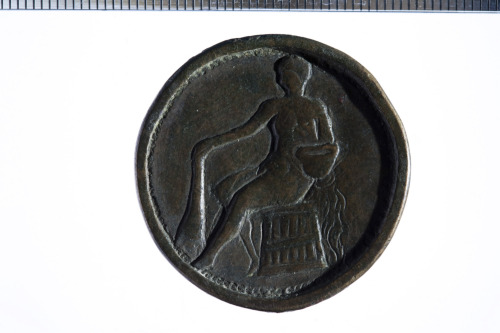 Dritto: Busto di Nerone-Hercules a s., dietro clava. Rovescio: Figura femminile seduta a s. su tino con clava nella d.