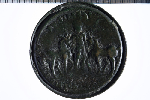 Dritto: Busto drapp. e laur. di Traiano a d.. Rovescio: Eutimio stante in piedi tra i due cavalli da corsa