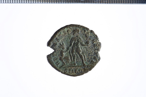Dritto: Busto diadem., drapp. e corazz. a d.. Rovescio: Imperatore stante a s., regge Vittoria su globo nella s. e porge la d. a donna con copricapo turrito inginocchiata, es. SM[AQS]