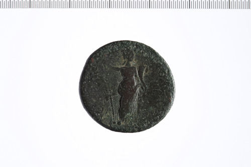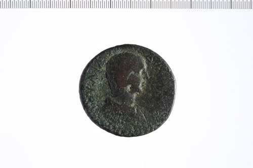 Dritto: Busto drappeggiato di Giulia Domna a d.. Rovescio: Figura femminile stante a d. con mano d. appoggiata su asta e mano s. con cornucopia.