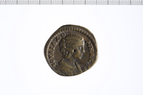Dritto: Busto drappeggiato di Giulia Domna a d.. Rovescio: Fortuna stante a s. con modius regge timone con la mano d. e cornucopia con la s.; globo ai suoi piedi.
