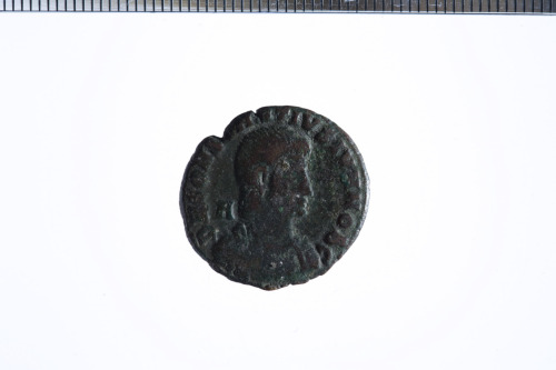Dritto: Busto elmato con alta cresta di Costantino a s. con corazza, scudo e spada. Rovescio: Due Vittorie alate reggono uno scudo su colonna, es. [ROM]