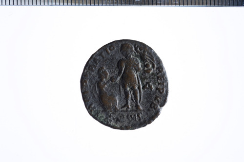 Dritto: Busto corazz., drapp. e diad. a d.. Rovescio: Imperatore stante con testa a s., con la mano destra stesa verso donna con copricapo turrito inginocchiata alla sua d. regge Vittoria su globo nella s., es. [SMTE]S