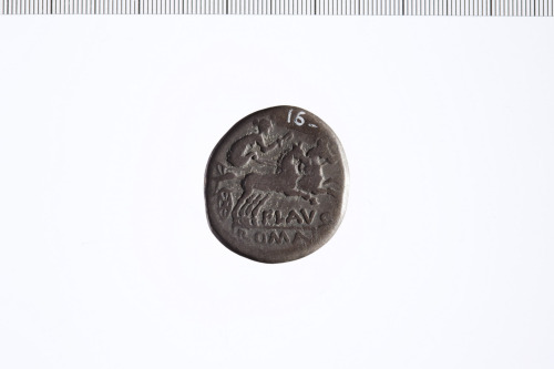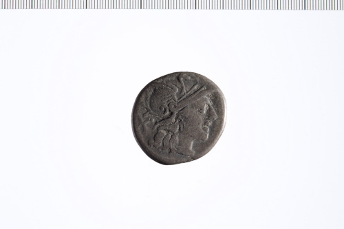 Dritto: Testa di Roma con elmo a d.,contorno perlinato.. Rovescio: Luna in biga a d. con briglie nella mano d. e frusta nella s. Contorno lineare.