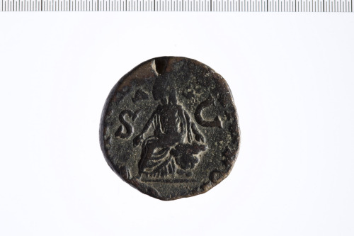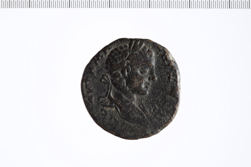 Dritto: Testa di Elagabalo a d. laureato.. Rovescio: Figura femminile, turrita, con chitone e peplo, seduta a s. su una roccia; ai suoi piedi fiume Oronte che nuota.