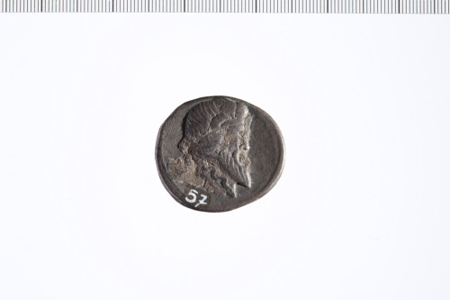 Dritto: Testa barbata a d. con diadema. Contorno lineare.. Rovescio: Pegaso a d. Contorno lineare.