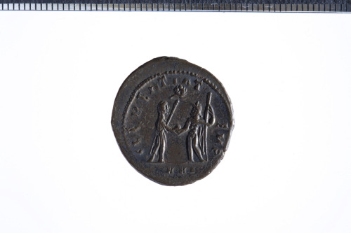 Dritto: Busto radiato e drappeggiato di Probo a d.; contorno perlinato.. Rovescio: L'imperatore stante a s. con scettro riceve un globo da Giove stante a d. con scettro; contorno perlinato.