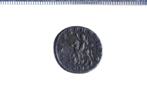 Dritto: Busto elmato e corazzato di Probo a s., con lancia e scudo; contorno perlinato.. Rovescio: L'imperatore a cavallo avanza a s. con mano levata e scettro; davanti, a terra, un prigioniero seduto con le mani legate; contorno perlinato.