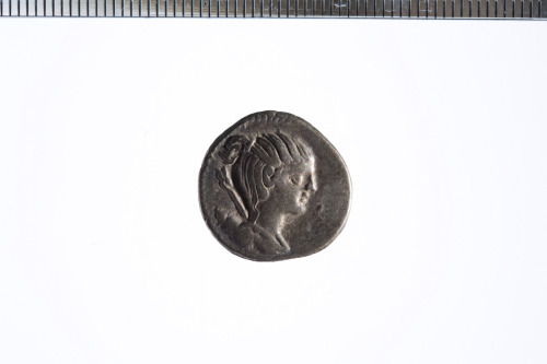 Dritto: Busto drappeggiato di Diana a d. con arco e faretra sopra le spalle; c.p.. Rovescio: Levriero che corre a d.; sotto, una lancia; c.p.