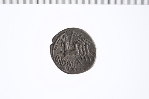 Dritto: Testa di Roma con elmo a d. Ricciolo sulla spalla s. Contorno perlinato.. Rovescio: Vittoria in quadriga a d. con redini in entrambe le mani e palma nella s. sopra corona. Contorno perlinato.