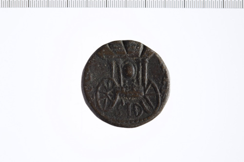 Dritto: Busto di Elagabalo a d. laureato e con paludamentum.. Rovescio: Carro con due figure all'interno che reggono sfera.