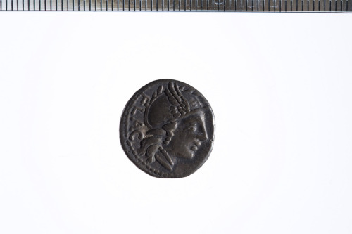 Dritto: Testa galeata di Roma a d. con elmo alato; c.p.. Rovescio: Vittoria in biga a d. che regge le redini con la mano s. e una corona con la d.; c.p.