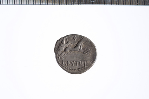Dritto: Testa galeata di Roma a d. con elmo alato; c.p.. Rovescio: Vittoria in biga a d. che regge le redini con la mano s. e una corona con la d.; c.p.