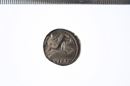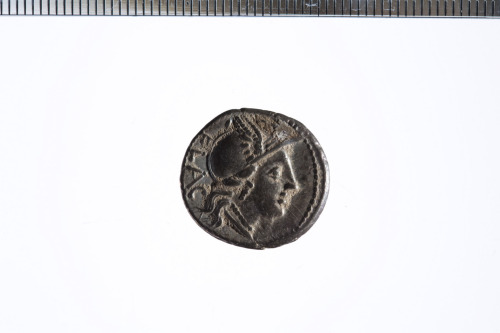 Dritto: Testa galeata di Roma a d. con elmo alato; c.p.. Rovescio: Vittoria in biga a d. che regge le redini con la mano s. e una corona con la d.; c.p.